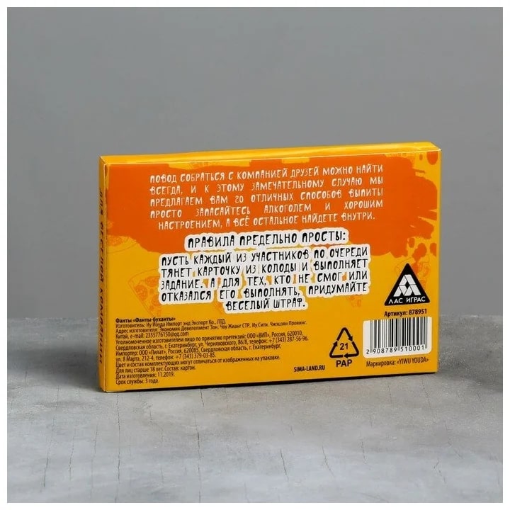 Купить игра для компании "фанты буханты" 20 карт от 100 руб. с доставкой до пункта выдачи в Тотьме. Интернет магазин ДекаМаркет. Оплата при получении.
